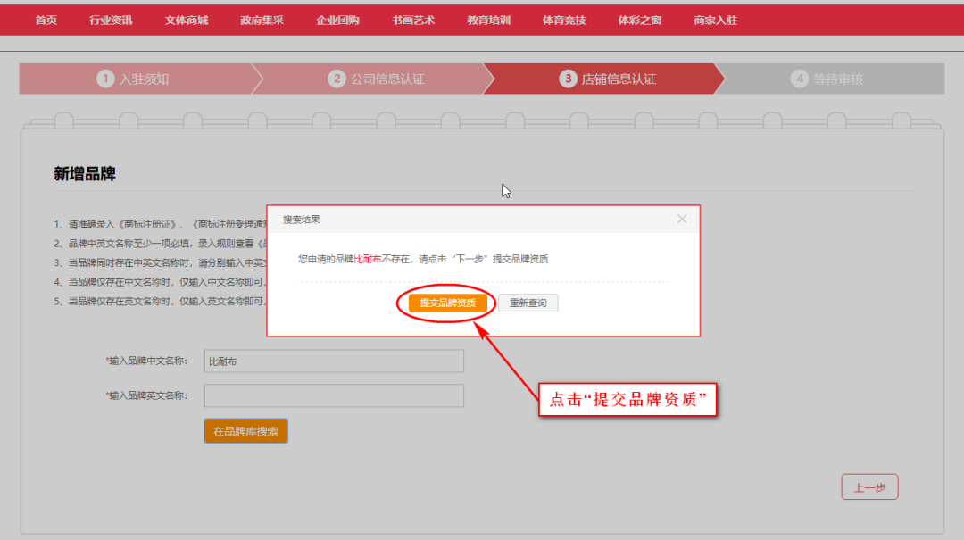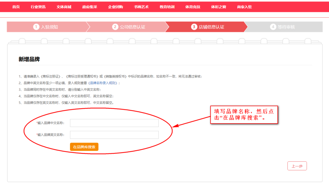 5-3、填写品牌名称,然后点击“在品牌库中搜索”