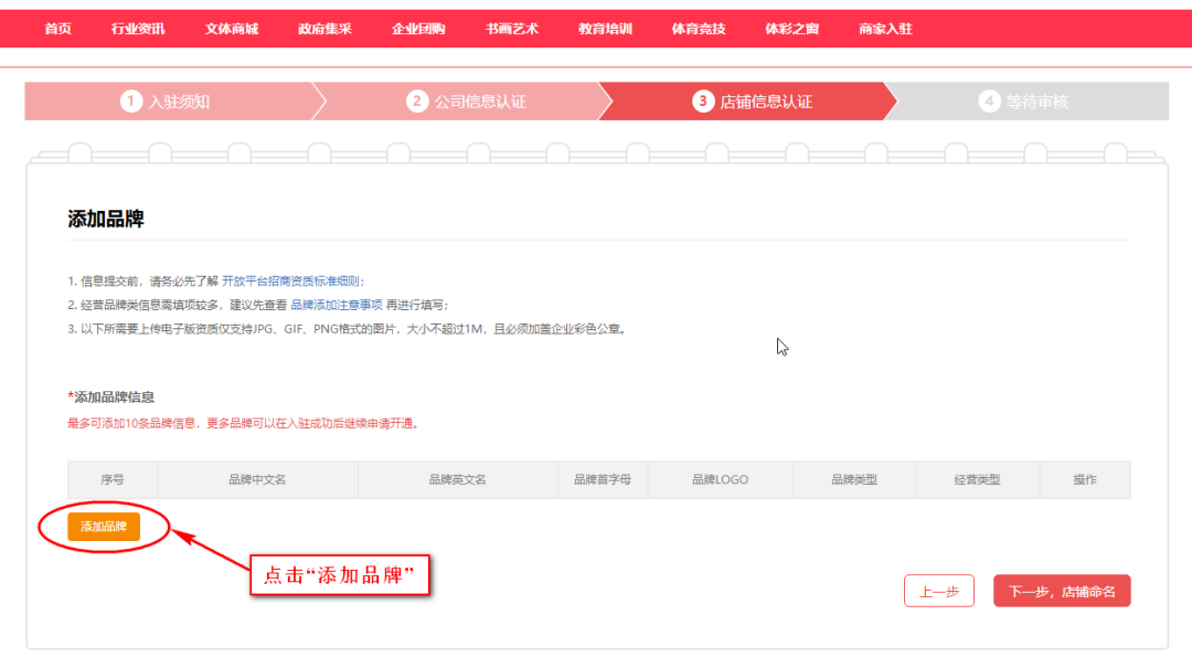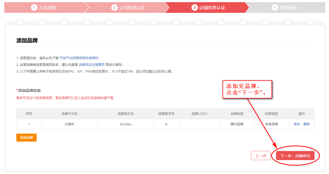 5-6、可以添加10条品牌信息,添加完点击“下一步”