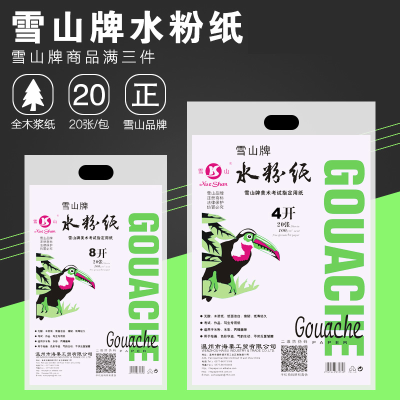 雪山牌8K 4K水粉纸 考试用纸水粉画全木浆纸